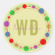 Adesivo Redondo Nome Monograma Círculos Coloridos Amarelo Roxo