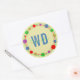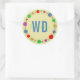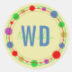 Adesivo Redondo Nome Monograma Círculos Coloridos Azul Verde