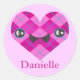 Adesivo Redondo Nome personalizado Argyle Kawaii Heart Sticker
