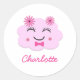 Adesivo Redondo Nome personalizado da nuvem kawaii rosa-rosa feliz