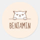 Simples ilustração de um gato branco zangado espiando por trás de um divisor. Personalize com o nome do seu filho.