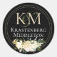 Personalize um adesivo com o sobrenome da noiva e do noivo. Há espaço para duas letras no monograma e dois nomes por baixo do monograma. Os nomes são complementados por: aquarela, rosas brancas baunilha e folhagem verde-inverno. Monograma Personalizado de Casamento Cream Black Classic Round Sticker