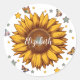 Adesivo Redondo Nome personalizado do presente de girassol retro f