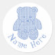 Adesivo Redondo Nome personalizado Pale Blue Pastel Gingham Teddy