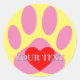 Adesivo Redondo Nome Personalizado Pawprint do Cão Rosa