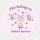 Adesivo Redondo Nome Personalizado Rapariga Cute Isto Pertence A R