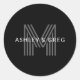 Adesivo Redondo Nome Retro Moderno Monograma Editável Preto e Cinz