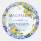 Adesivo Redondo Nomes De Casamento De Limões De Azulejo Azul Elega