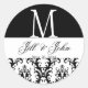 Adesivo Redondo Nomes de Monograma de Casamento Data Damask Black
