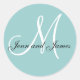 Adesivo Redondo Nomes e Monograma Inicial Vinheta Azul e Branco