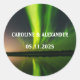 Nortes, vinhetas de casamento Aurora Borealis. Céu noturno, estrelas, árvores clássicas de autocolantes redondos. Personalize com seus Nomes e a data do casamento.