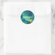 Obrigado, Norte, Aurora Borealis. Céu noturno, estrelas, árvores clássicas de autocolantes redondos. Personalize com seus Nomes e a data do casamento.