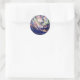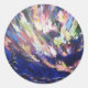 Aurora borealis em cores brilhantes contra um céu e paisagem azul-escuros, articamente impressa a partir de arte abstrato expressionista por S. Lynnette.