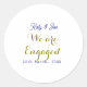 Adesivo Redondo Nós estamos noivos nome data dourado roxo elegante