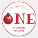 Fique na sua primeira festa de aniversário. Inclui as palavras "Nossa pequena joaninha é um" com a palavra 'um' iniciada com uma ilustração de joaninha. Estes autocolantes também incluem um nome personalizável.