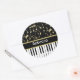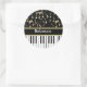 Adesivo Redondo Notas Musicais e Chaves Pianas Pretas e Douradas