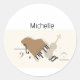 Musical Notes and Piano Keys Black and Dourado Classic Round Sticker Um design elegante para o pianista ou teclado - com teclas de teclado com notas musicais de ouro colorido sobre fundo preto. A cor de fundo pode ser alterada para qualquer cor, de acordo com as suas próprias necessidades e estilo, Personalize o texto na faixa colorida do ouro entre as teclas do piano e as notas de música