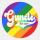 Uma mistura de 'gay' e 'tio', um tio gay. O Dia dos Tios da gay, também conhecido como Dia dos Tiros, é alegadamente celebrado no segundo domingo de agosto. Procurando por uma ideia divertida para que eles saibam que estão prestes a se tornar um tio gay pela primeira vez? Há um sobrinho ou sobrinha a caminho? Por que não dar ao tio feliz este adesivo com o ano em que se tornarão um tio - e dar a notícia da forma mais bonita possível? Seja como for, torne o seu dia especial ainda mais especial. Ou, talvez, você quer isso para si mesmo? Você pode ocultar o fundo da bandeira do arco-íris para uma aparência mais simples.