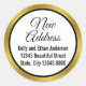 Adesivo Redondo Novo Endereço Dourado Script Elegante Branco Preto
