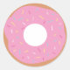 Este adesivo apresenta uma rosquinha de fosco rosa, fofinha, com aspersão rosa, amarela e azul. O círculo do centro branco pode ser personalizado, se desejado.
