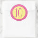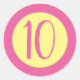 Adesivo Redondo Número 10 - Texto rosa personalizável em amarelo