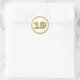 Celebre dezenove com estilo dourado com este adesivo redondo de número 19 de balão dourado! Com um “19” brilhante em tipografia estilo balão em folha falsa dourada emoldurado por uma borda dourada, este design adiciona um toque festivo e sofisticado a qualquer festa.