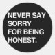 ADESIVO REDONDO NUNCA DIGA DESCULPA POR SER HONESTO