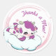 Adesivo Redondo Nuvem Branca de Vaca Rosa Púrpura Elegante Obrigad