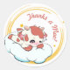 Expresse sua gratidão com sofisticação usando nosso elegante obrigado chá de fraldas que você cola, apresentando uma representação serena de uma vaca bebê sonolenta aninhada em uma nuvem contra um pano de fundo tranquilo do céu. Compartilhe sua gratidão em estilo com este encantador adesivo que captura a essência da elegância e serenidade. ☁️ 🐄 💖