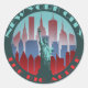 Esta renderização artística apresenta a ascensão da Estátua da Liberdade antes de 22 dos arranha-céus icônicos da cidade e é acentuada por uma fonte de deco de na moda de arte proclamando Nova Iorque como A Grande Maçã.
