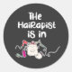 Adesivo Redondo O cabeleireiro está em Presentes Engraçados