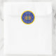 Motif tradicional de scallop ou concha de cockle e texto de peregrino em azul e amarelo. Para a sua peregrinação no caminho da Rua James, com um motif tradicional de conchas Scallop. Adicione facilmente o texto da sua chegada e ajuste a curvatura, se necessário