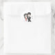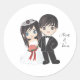 O adesivo de casamento mostra uma noiva estilizada e noiva, mas você pode substituir esse desenho por seu próprio ou de sua escolha. Os nomes são inseridos, que você também pode alterar.
