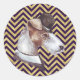 Na moda design apresenta a ilustração aquosa de um cão Airedale no perfil vestindo um fato e um chapéu de cima sobre fundo listrado de diafrão preto e dourado