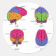 Cérebro humano de todos os lados com seções em cores diferentes e rótulos de texto