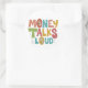 Esta design de camiseta atraente apresenta a frase "Money Talks Loud" em um vibrante esquema multicolorido. Cada palavra é uma cor ousada diferente, fazer uma declaração e chamando a atenção.