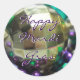 Foto de miçangas de Mardi Gras com um grande talão de ouro e a saudação "Feliz Mardi Gras". As cores da banda apresentam as cores dourada, roxa e verde da celebração do Mardi Gras. As miçangas também são conhecidas como "jogadas", já que são jogadas por membros do Krew para aqueles que observam o desfile flutuar. Os adesivos e decalques do Mardi Gras podem ser personalizados para adicionar sua própria mensagem.