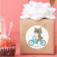 Adesivo Redondo O gato da mesa está andando de bicicleta.