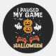 Adesivo Redondo O Jogador De Halloween Pausou O Meu Jogo De Costum