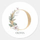 Florial da letra O monograma. A letra O na textura marrom ouro acentua-se com folhas compostas de cor aquosa verde, flores e pó de ouro. Personalizado com o nome na fonte correspondente.