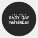 Adesivo Redondo O Único Dia Fácil Foi Ontem Texto Branco