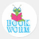 Adesivo Redondo O verme do livro verde-brilhante do cartoon