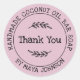 Adesivo de agradecimento rústico country em rosa empoeirado para seus produtos artesanais com folhagens.