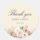 Adesivo de casamento "Obrigado!" personalizado, elegante, bege, cores pastéis, flores.