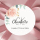 Adesivo Redondo Obrigado à flora dourada rosa