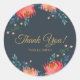 Adesivo Redondo Obrigado! Azul Escuro, Elegante, Flores Brancas