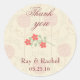 Obrigado, os adesivos florais bonito são uma maneira excelente de decorar seus cartões de agradecimento. Apresentando um fundo de cor pastel e um design floral verde e pêssego, as flores formam um espaço entre "Obrigado" e o nome do casal e as informações de data de casamento. Toda fonte é escrita em uma cor vermelha complementar. Cartão postal Design: WeddingsbyRhoadie Floral fundo: Prettygrafik design (https://www.etsy.com/shop/Prettygrafikdesign) trabalho de arte Floral: AMBilustrações http://www.etsy.com/shop/AMBillustrations/