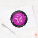 Adesivo Redondo Obrigado, Borboleta de Diamante, Preto e Fuchsia