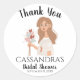 Diga obrigado aos amigos e familiares por comparecerem à sua celebração com uma mãe terra boho calma e serena com longos cabelos castanhos oferecendo um buquê de corações como agradecimento por terem vindo celebrar conosco. O nome, evento e data podem ser personalizados para um design de adesivo personalizado lindo e torna-se um complemento personalizado atencioso para qualquer configuração de mesa em seu próximo chá de bebê, festa de aniversário, chá de noiva ou encontro.