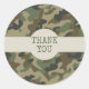 Adicione este adesivo de camuflagem militar verde aos seus cartões de agradecimento. Excelente para chás de fraldas para rapazes. O texto pode ser editado.